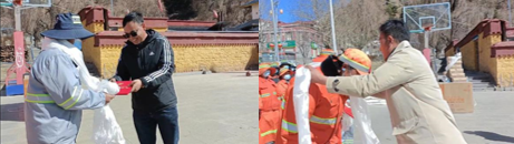 年輪流轉,時光飛逝。告別成績斐然的2021年,迎來充滿希望的2022年,在這藏歷水虎年來臨的關鍵時刻,西藏圣凈環(huán)保服務有限公司展現(xiàn)新?lián)敗^發(fā)新作為,積極發(fā)揚企業(yè)愛心文化精神。2月15日,總公司環(huán)衛(wèi)部經(jīng)理白瑪次珠、吉隆分公司經(jīng)理貢覺次達、吉隆環(huán)衛(wèi)項目部經(jīng)理旦增晉美等一行工作組在吉隆縣副縣長旦增羅白同志和縣住建局局長邊巴同志的陪同下,深入吉隆鎮(zhèn)開展了2021年度“送溫暖、送愛心、表彰先進”活動。